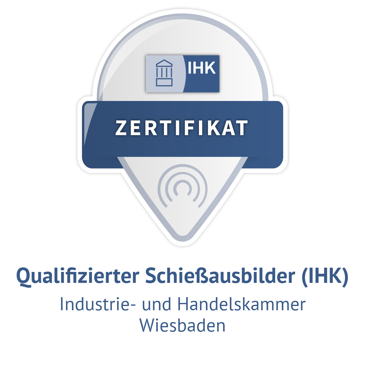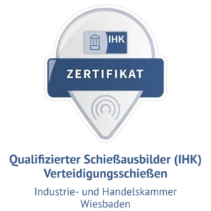 Als Nachweis unserer fundierten Ausbildungsmethoden sind wir stolz darauf, den Titel "Qualifizierter Schießausbilder" und "Qualifizierter Schießausbilder für Verteidigungsschießen" der IHK tragen zu können!